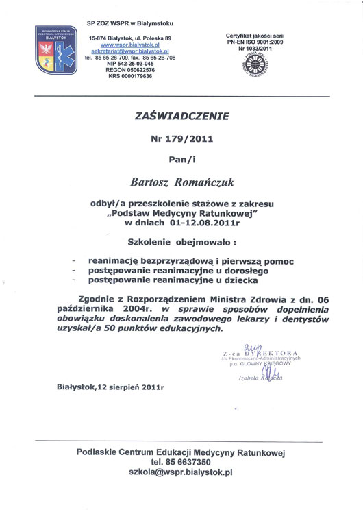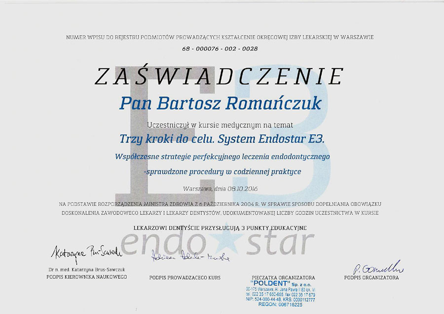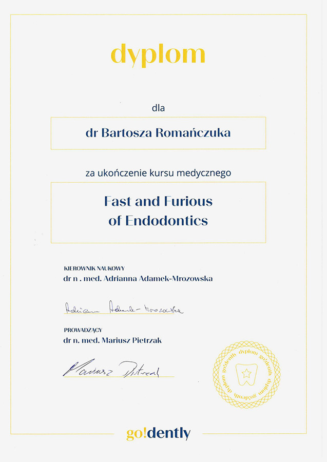 Absolwent Uniwersytetu Medycznego w Białymstoku z 2010 roku. Od 2012 roku pracuje jako lekarz stomatolog w ProDentist. Jego zainteresowania zawodowe obejmują endodoncję i protetykę, stomatologię estetyczną, odbudowę, a także wiele innych dziedzin stomatologii, w których stale poszerza swoją wiedzę i umiejętności, uczestnicząc w specjalistycznych kursach stomatologicznych i śledząc najnowsze czasopisma i prasę stomatologiczną. Bierze aktywny udział w skomplikowanych, kompleksowych przypadkach rehabilitacji jamy ustnej, realizowanych w naszej klinice.