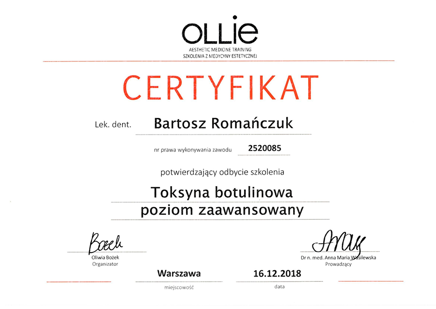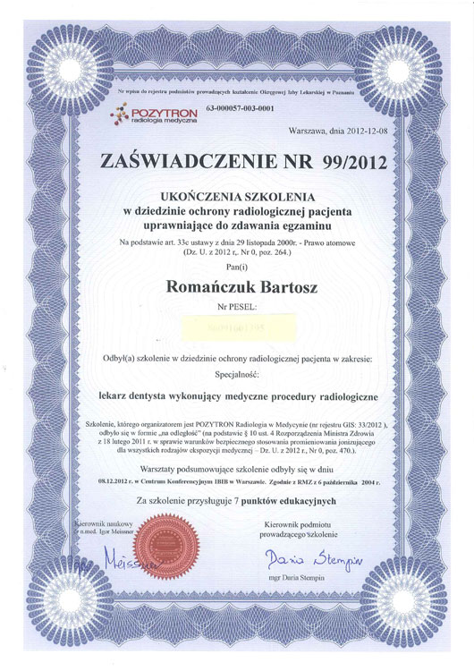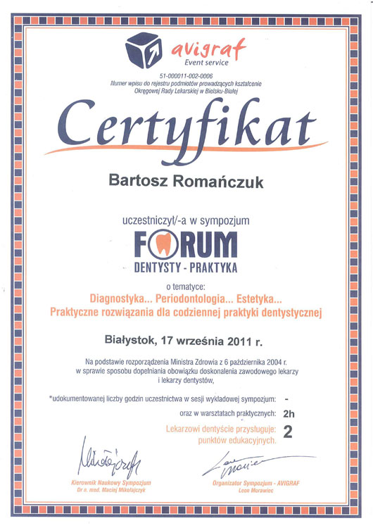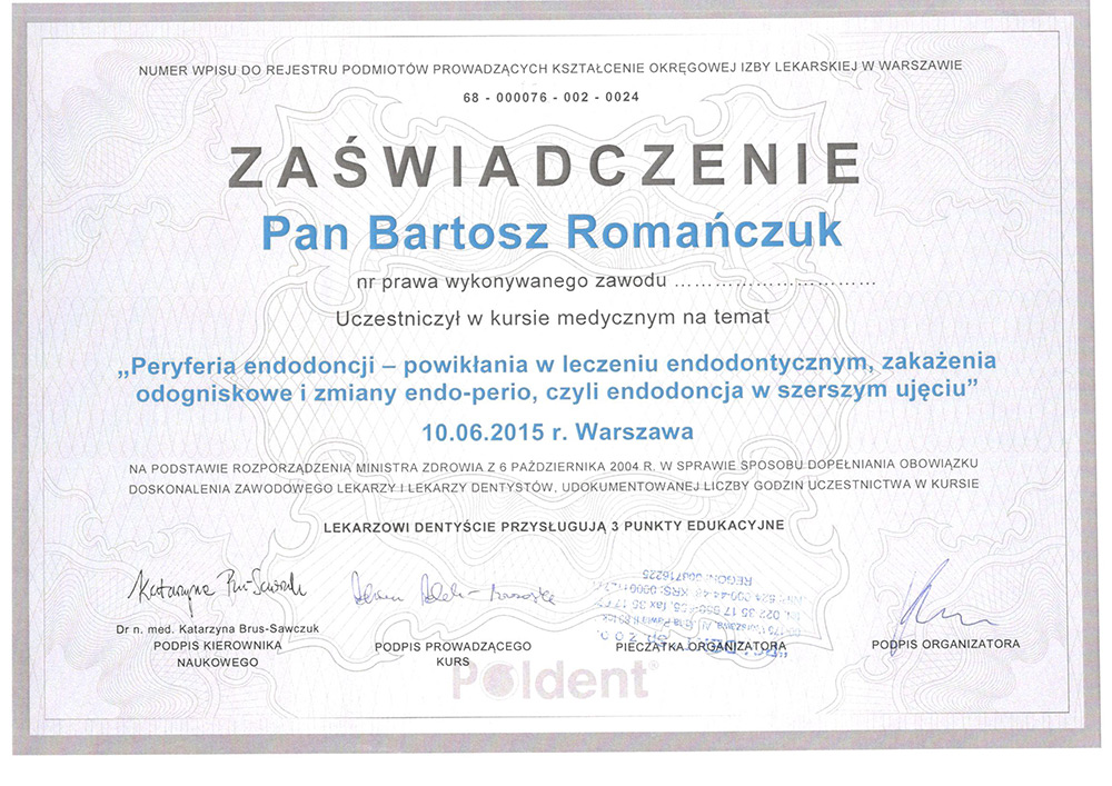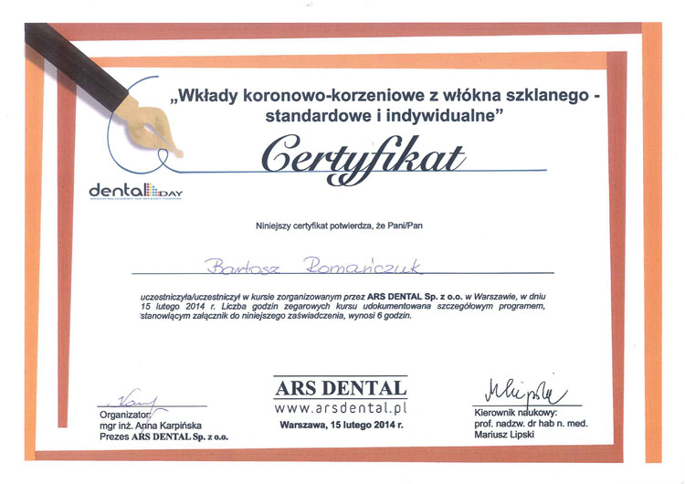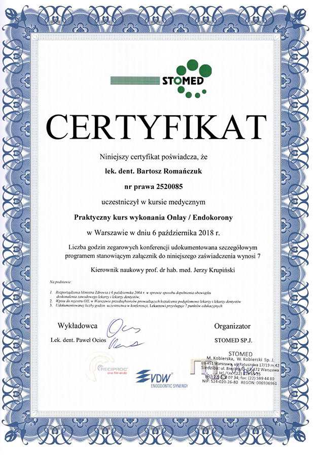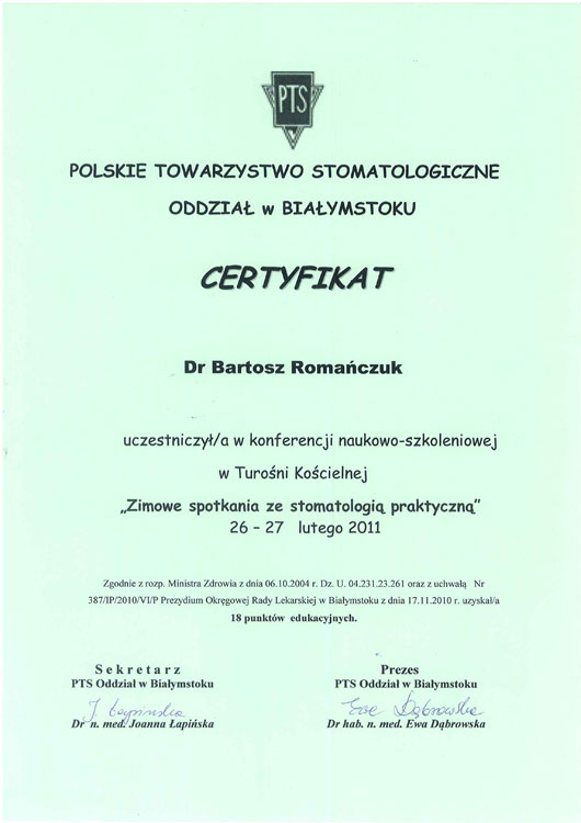 W swojej codziennej praktyce dr Romańczuk dba zarówno o precyzję i profesjonalizm swojej pracy, jak i o to, aby jego pacjenci czuli się bezpiecznie i komfortowo podczas wizyt w naszym gabinecie. Efektem jest zdrowy uśmiech pacjentów i satysfakcja z wykonywanej pracy.