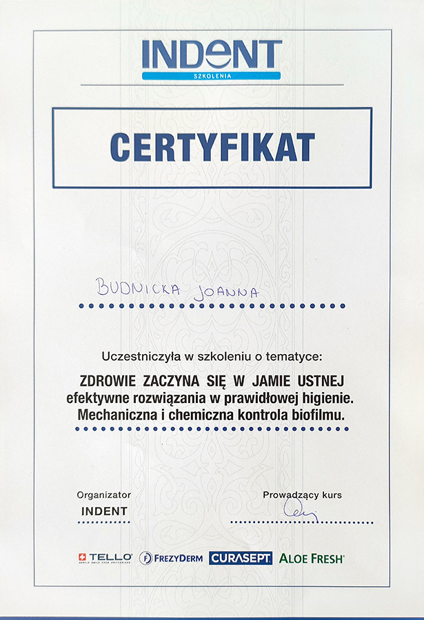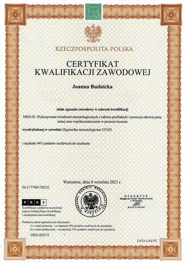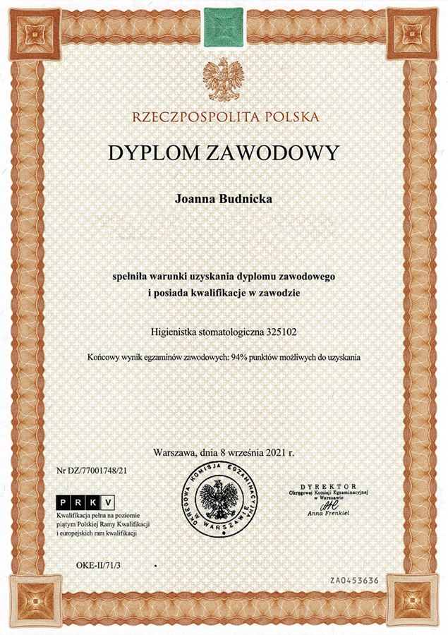 Asystentka i dyplomowana higienistka stomatologiczna.