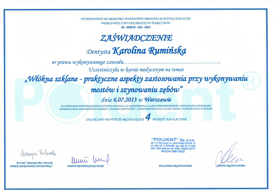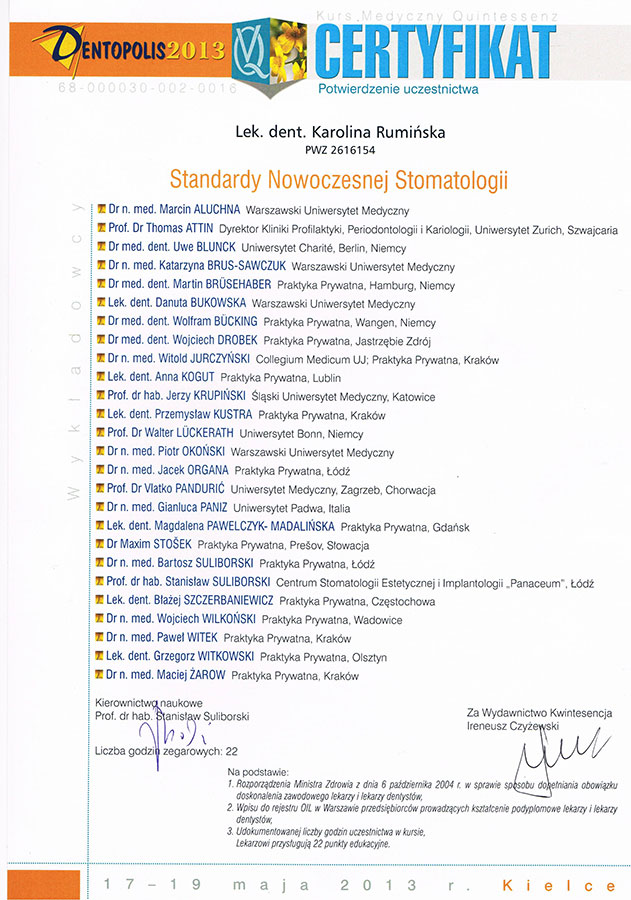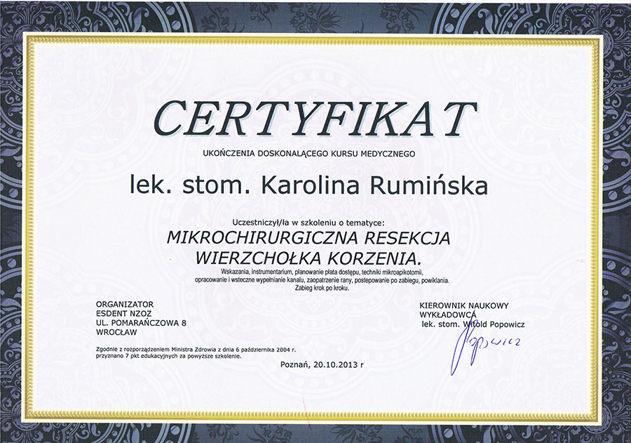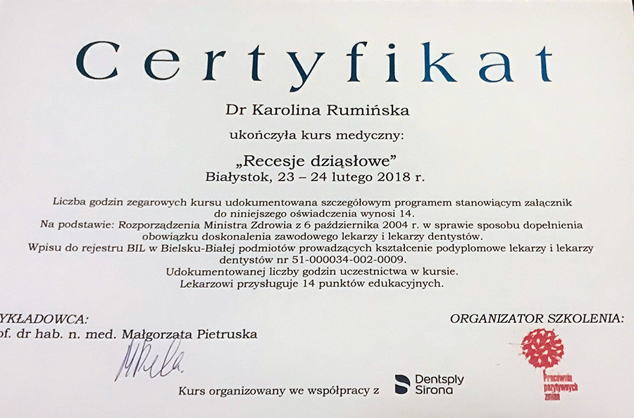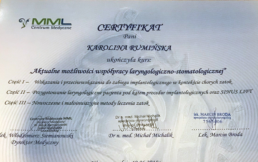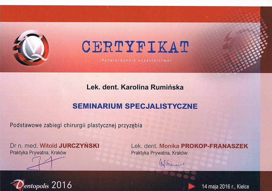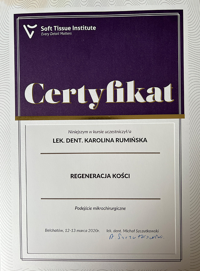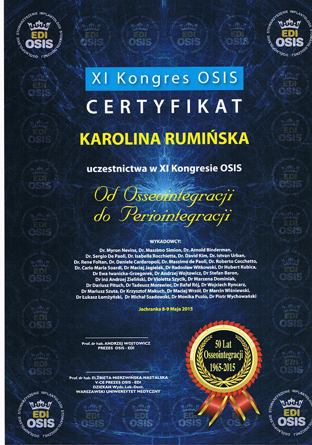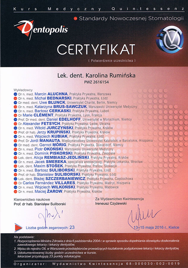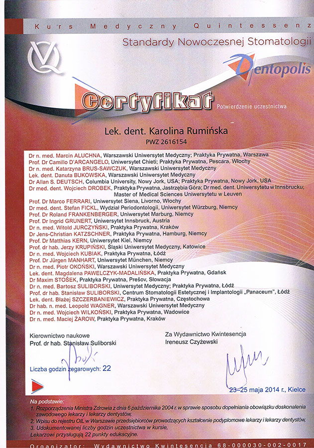 Od początku swojej kariery zawodowej pasjonuję się chirurgią i implantologią, stale podnosi swoje kwalifikacje na krajowych i zagranicznych szkoleniach. Delikatna, precyzyjna i zawsze dba o najwyższy komfort podczas zabiegu. Największą satysfakcją dla pani doktor jest uśmiech i zadowolenie pacjenta po najtrudniejszych zabiegach.